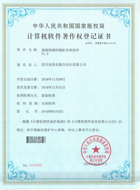 - 關(guān)于我們 - 資質(zhì)榮譽 - 脫硫脫硝控制柜系統(tǒng)軟件